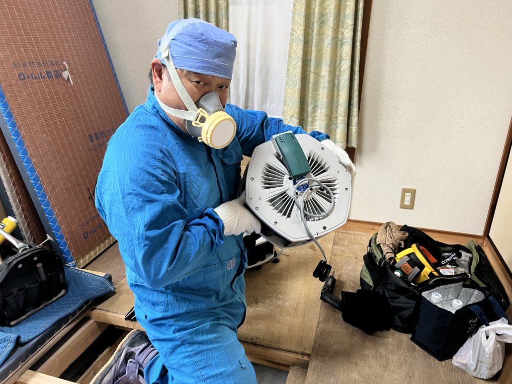 お家に発生したカビを丹念に除去した後、専用の薬剤を使用して、徹底的にカビを死滅させていきます。