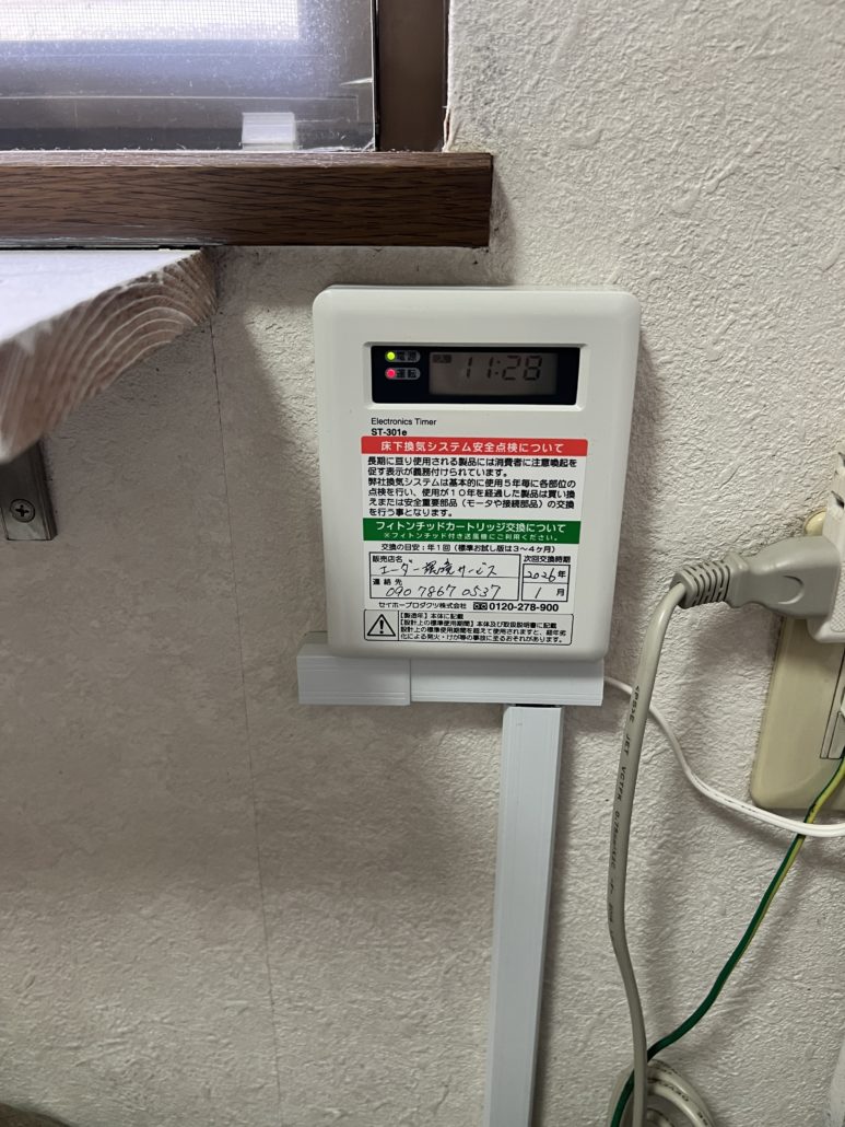 コントローラーは浴室の脱衣場に。タイマー機能などもついており、季節等に応じて動作時間を変えられます。