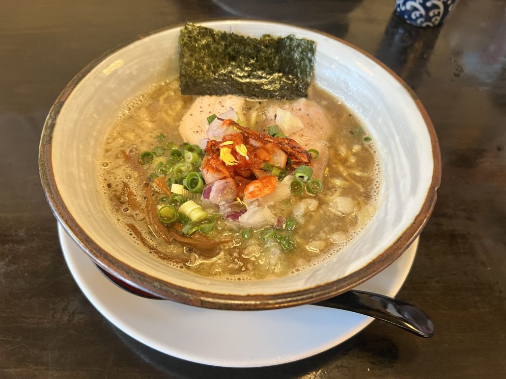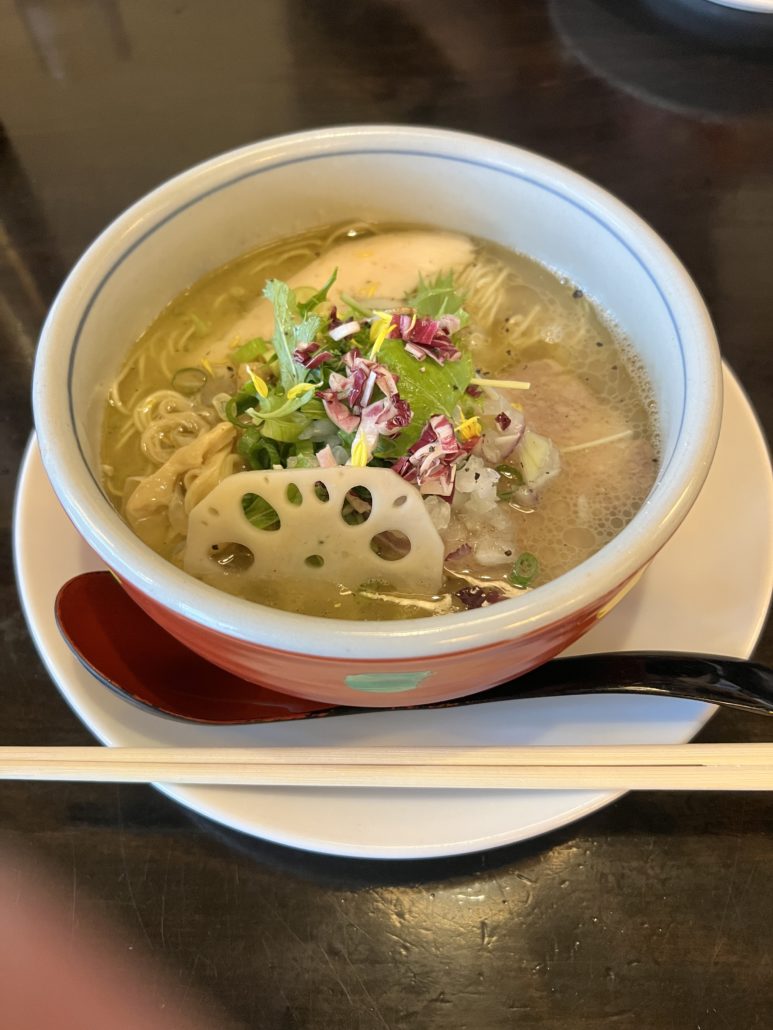 今回の職人ランチは、松阪市久保町の『中華そば 花紋』さん。あまりに美味しすぎて2日通いました。「山椒香る塩そば」と「ニボシムラサキ」を頂いたのですが、どちらも計算され尽くした芸術的な旨さ…! ごちそうさまでした♪