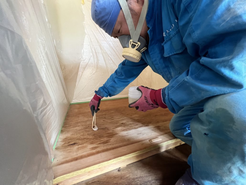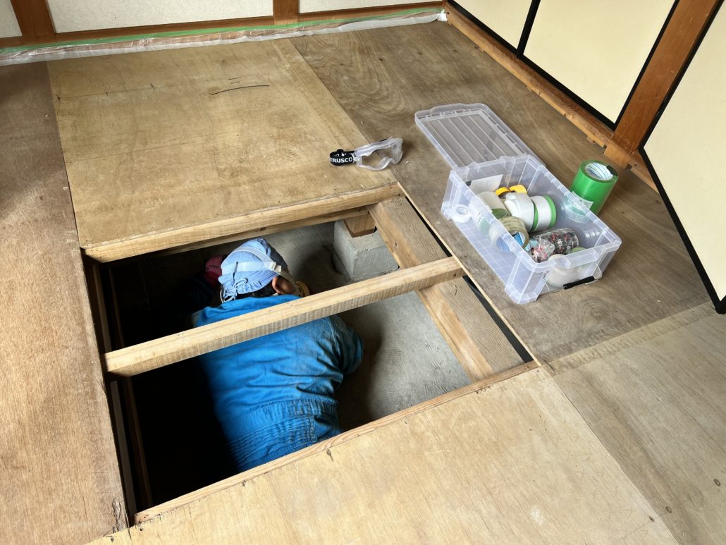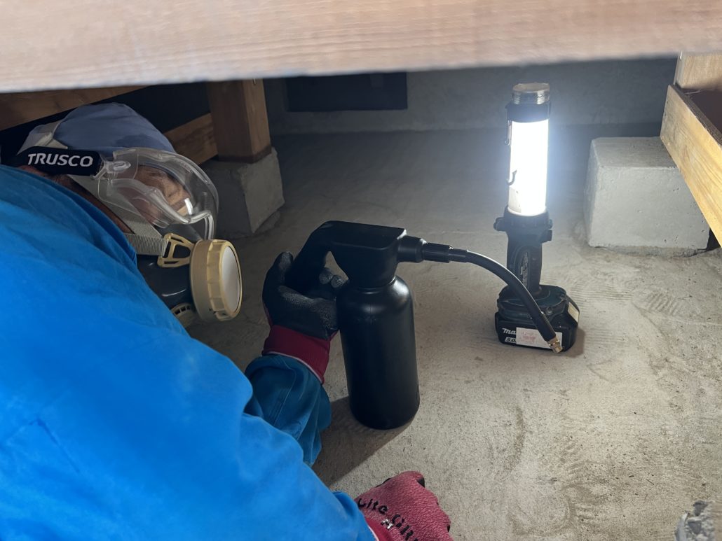 床下に発生したカビも徹底的に除去した後、薬剤を使用して死滅化させ、抗菌薬を塗布していきます。
